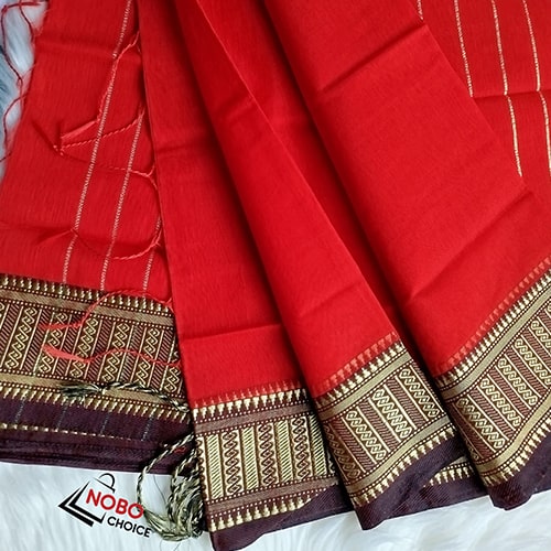 আড়ং হাফ সিল্ক লাল সুতি শাড়ি