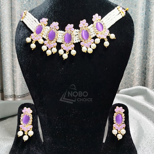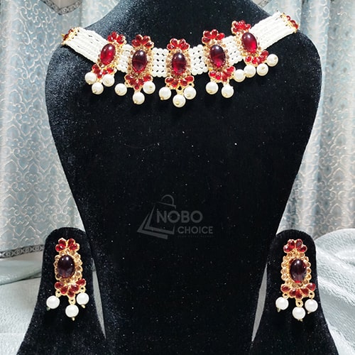 রঙিন বিড, মুক্তো ও ফুলের কারুকাজে তৈরি এই ফ্লোরাল নেকলেস সেটটি পাওয়া যাচ্ছে দৃষ্টিনন্দন রঙে। বিয়ে, মেহেদি বা যেকোনো উৎসবে আপনার সাজকে করবে আরও এলিগ্যান্ট ও আভিজাত্যপূর্ণ।